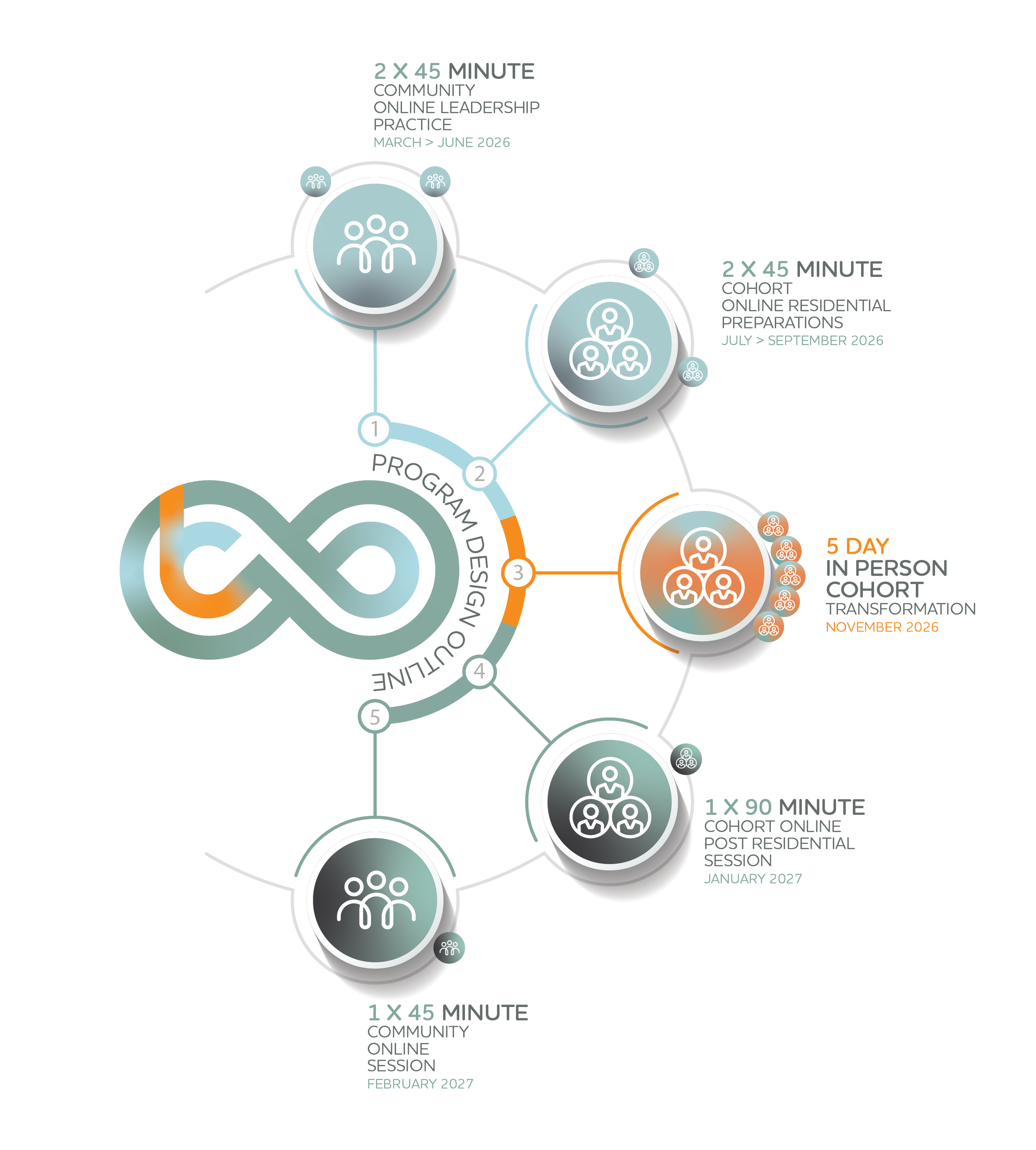 Your transformation extends far beyond the immersive week. The program is structured with vital online components to prepare you, maximise your learning, and sustain your impact afterward.